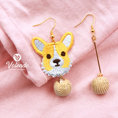 [手作]純刺繡柯基犬耳環/Embroidery Corgi Earring - 5a4e3daa6ef2d4a61900079c